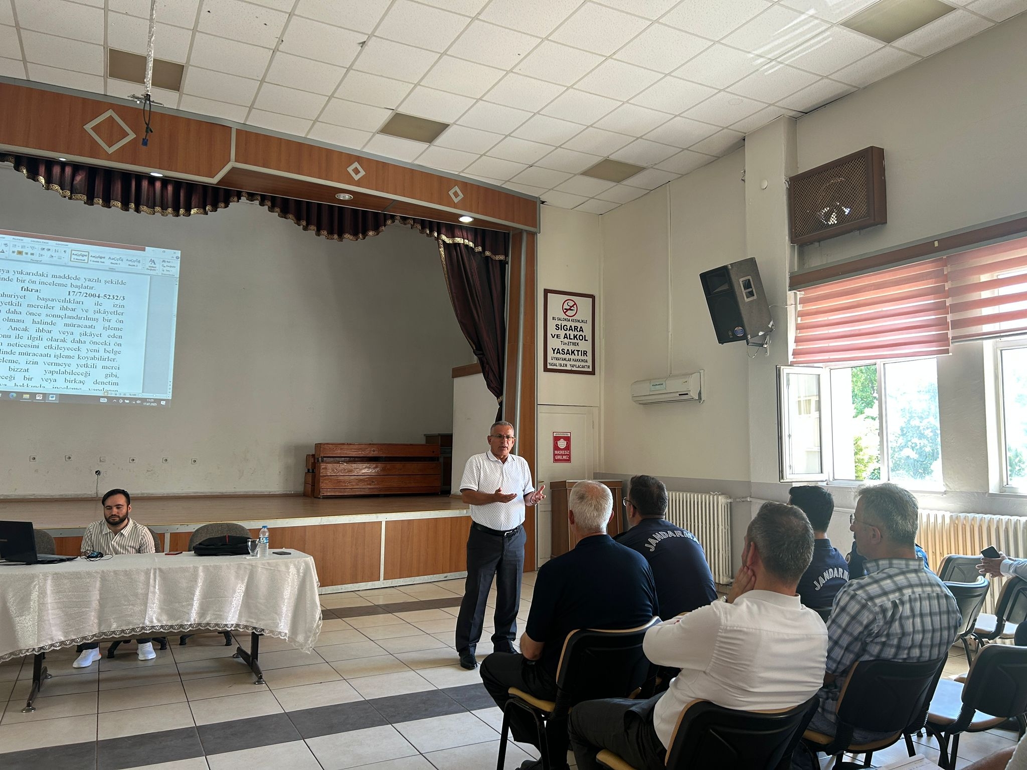 Sinop İl Milli Eğitim Müdürlüğü Eğitim Müfettişi Ahmet SEVİNDİK tarafından, ilçemizdeki kamu kurum ve kuruluşlarında görev yapan birim amirleri ve yardımcılarına yönelik olarak 4483 Sayılı Memurlar ve Diğer Kamu Görevlilerinin Yargılanması Hakkında Kanun kapsamında hizmet içi eğitim düzenlendi. Eğitim kapsamında; kanunun amacı, kapsamı, uygulama esasları ve karşılaşılan güncel uygulama örneklerine değinildi.